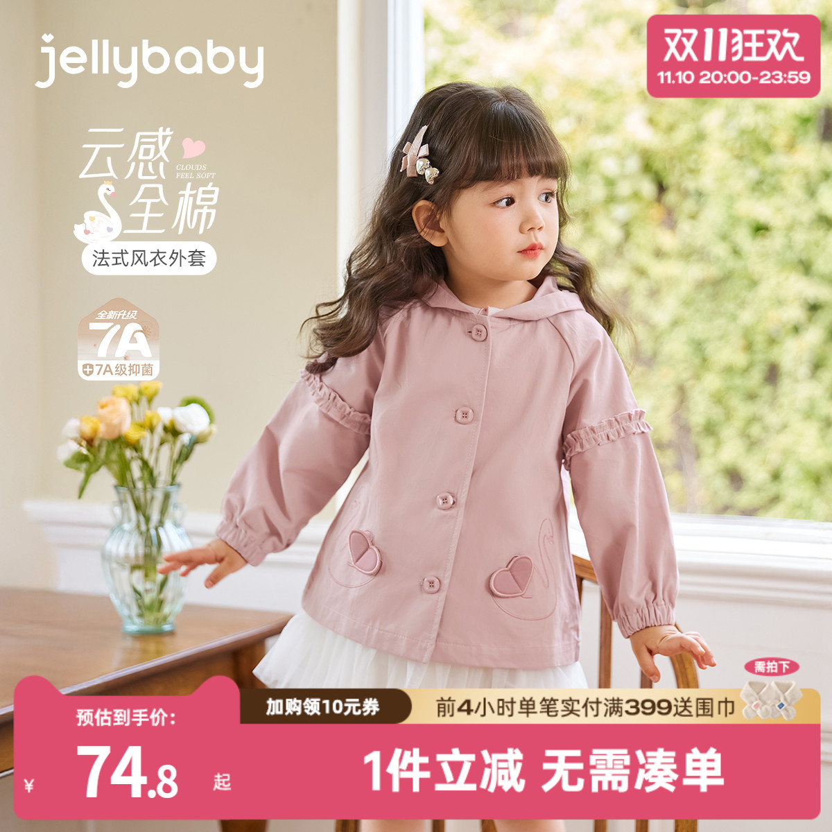 [纯棉抗菌]女童秋装2025新款风衣宝宝法式连帽洋气上衣秋儿童外套
