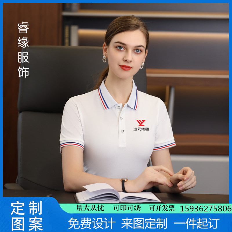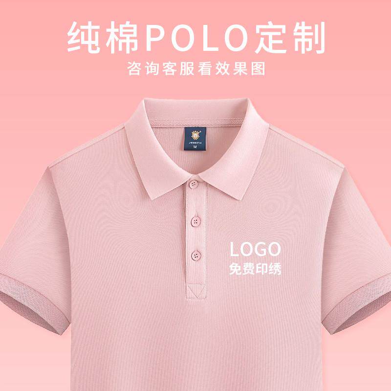 t恤女短袖翻领定制工作服polo衫粉色团体文化衫印字logo刺绣工衣