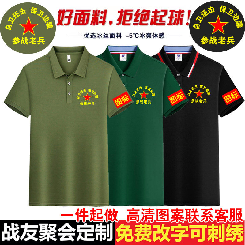刺绣战友聚会军绿色t恤纪念衫翻领Polo短袖男参战退伍老兵定制T恤