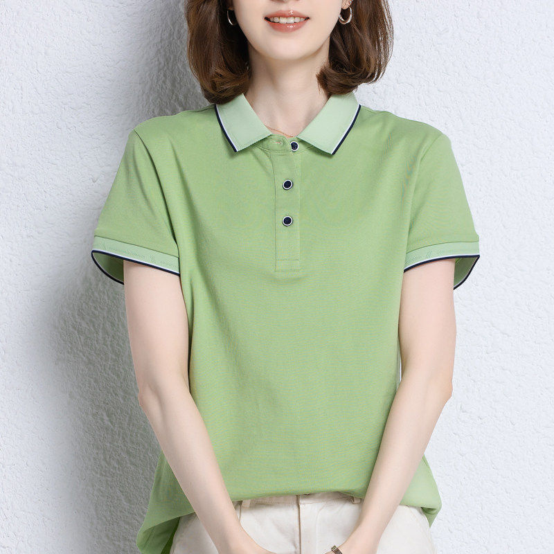 夏季新款纯棉polo衫t恤短袖女翻领t恤定制定做印logo刺绣有领半袖