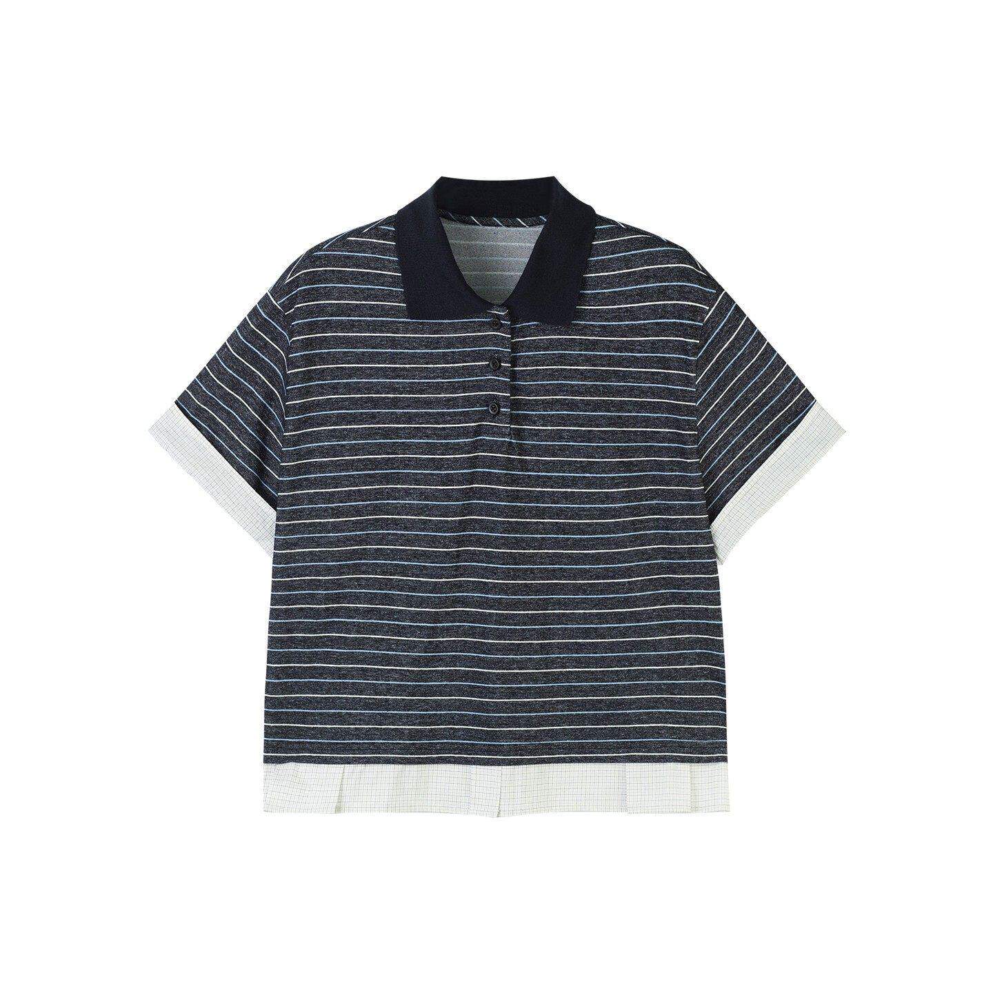 定制女装 条纹短袖POLO衫棉莫代尔宽松落肩复古显瘦0638