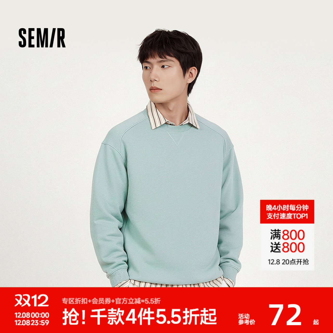 森马卫衣男春季纯色简约百搭长袖上衣休闲套头圆领打底衫柔软舒适
