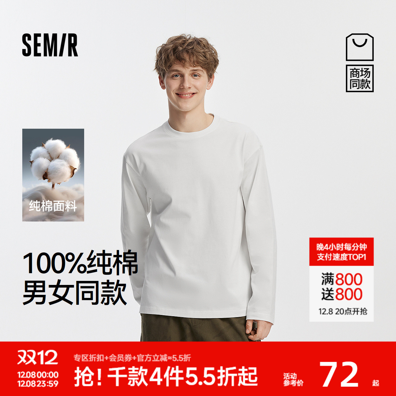 [商场同款]森马长袖T恤男纯棉打底衫2025春秋新款纯色内搭情侣款
