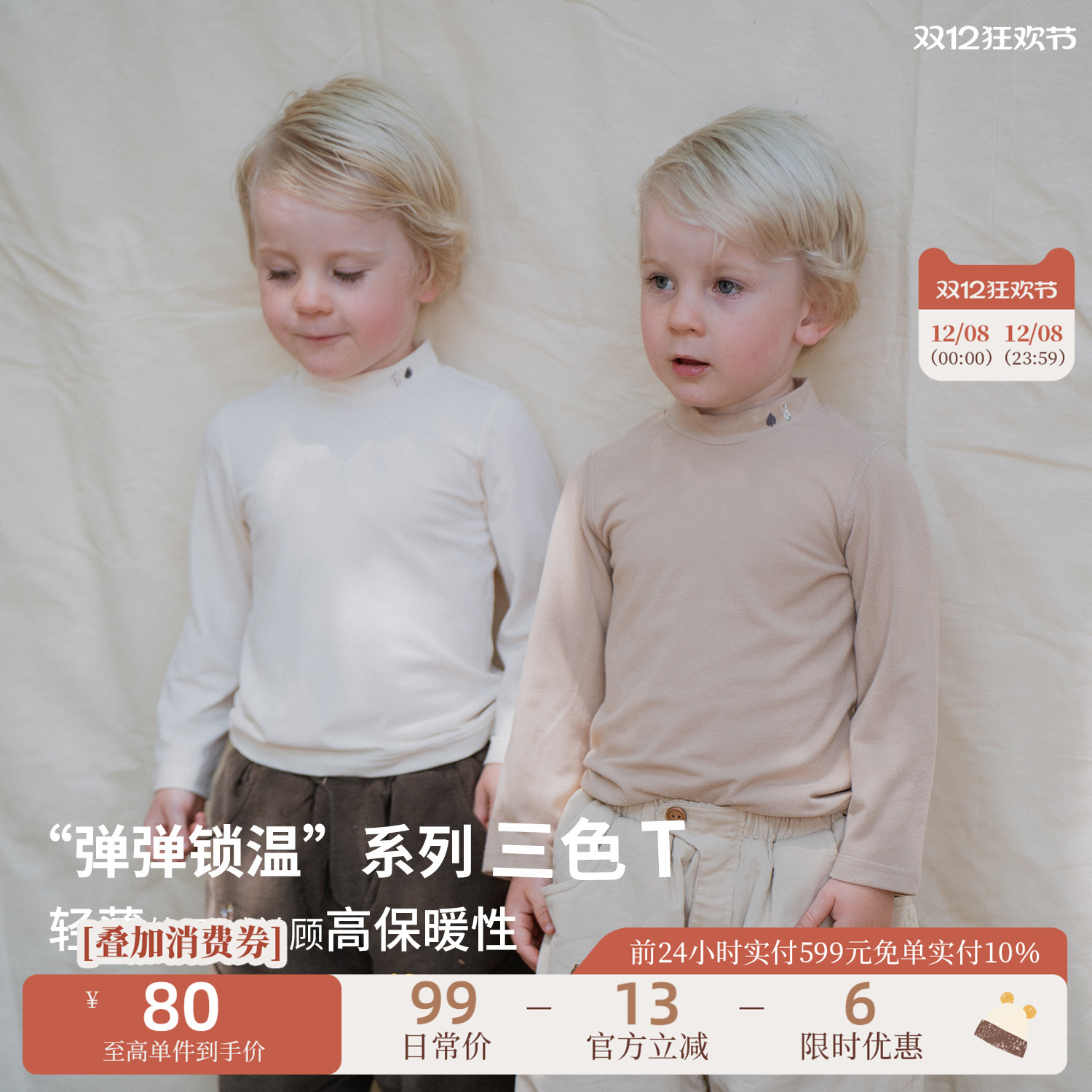 whitewheat男童2025秋冬新款上衣女孩立领长袖宝宝纯色洋气打底衫