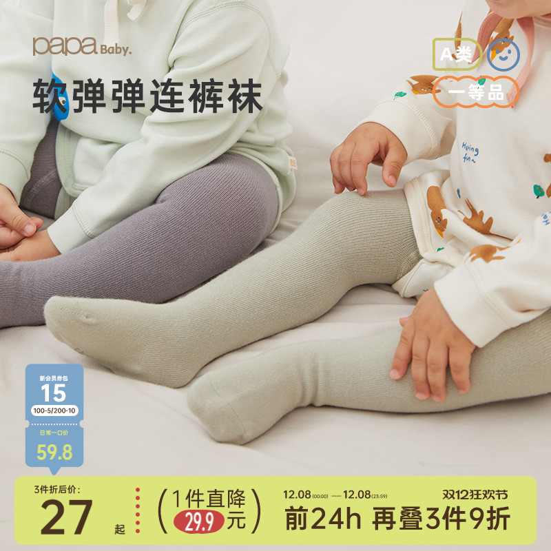 papa爬爬秋季婴儿打底裤子男女宝纯色连裤袜弹力柔软亲肤可爱