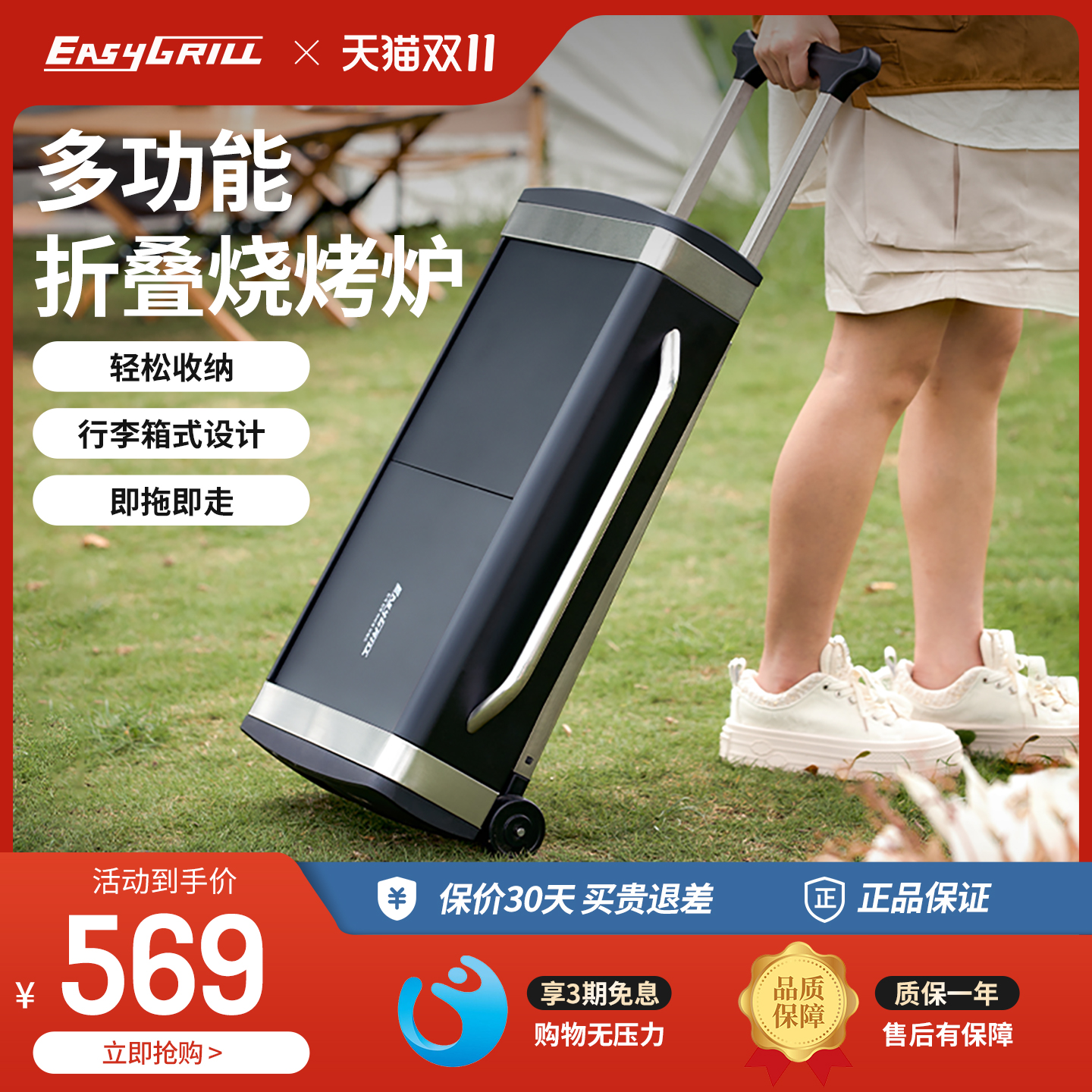 EasyGrill户外烧烤炉家用折叠收纳便携式庭院木炭烤炉烤串BBQ烤架