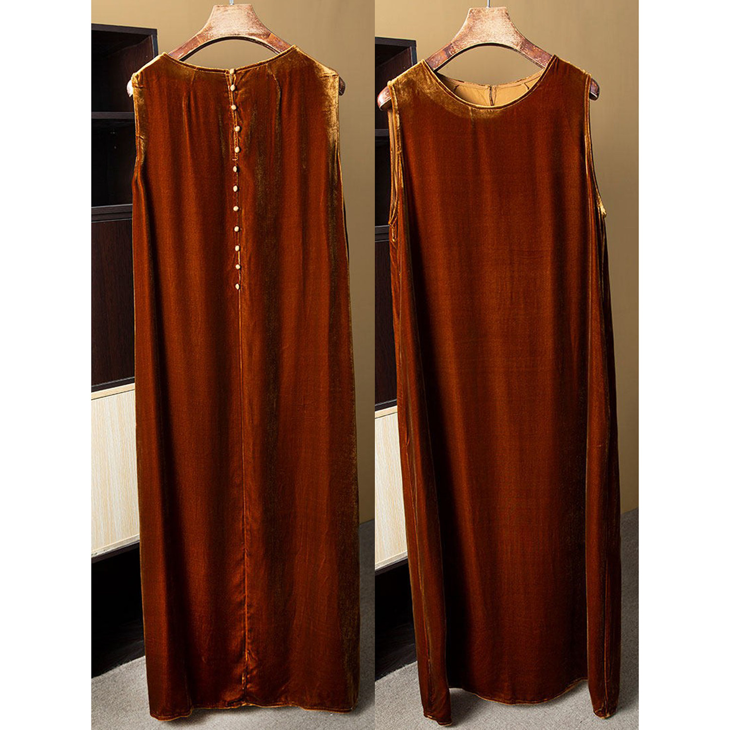 丝艺 真丝丝绒裙 桑蚕丝宽松背心裙女春季新款显瘦圆领连衣裙长裙
