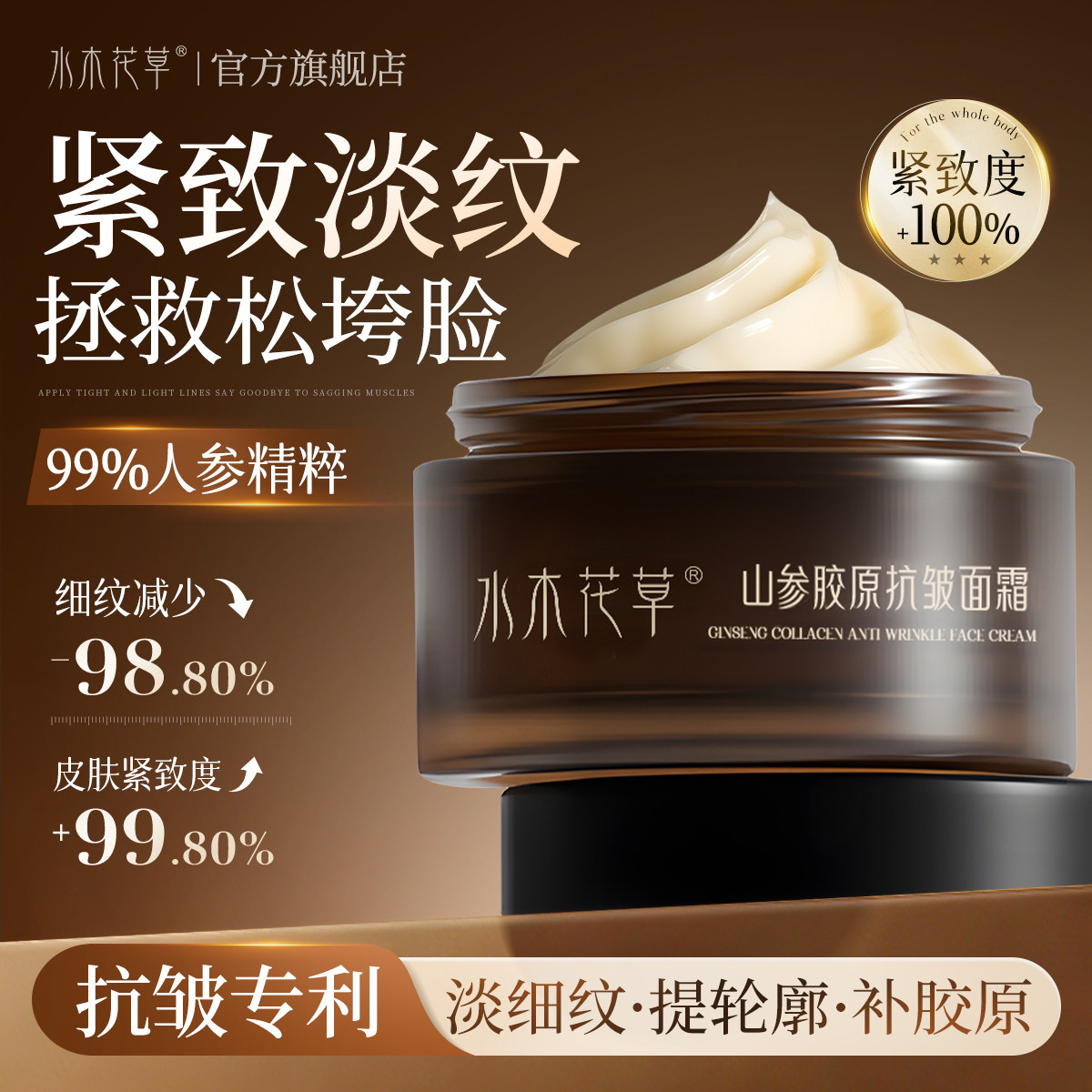 人参胶原蛋白淡纹面霜抗皱紧致抗衰老美保湿滋润补水白提亮去黄女