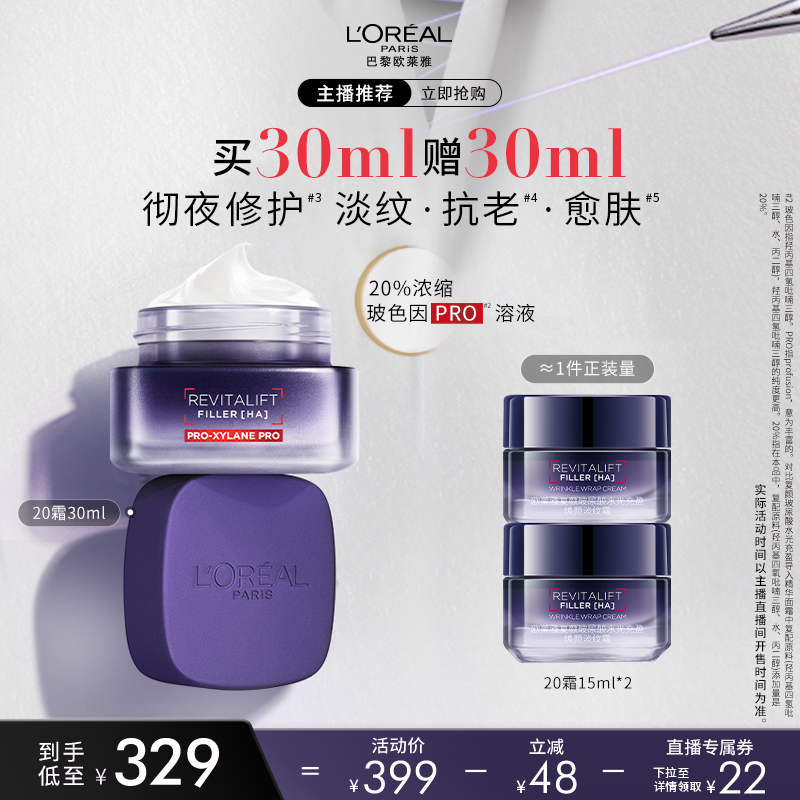 欧莱雅20霜玻色因面霜抗皱紧致淡纹抗老滋润补水保湿舒缓护肤品