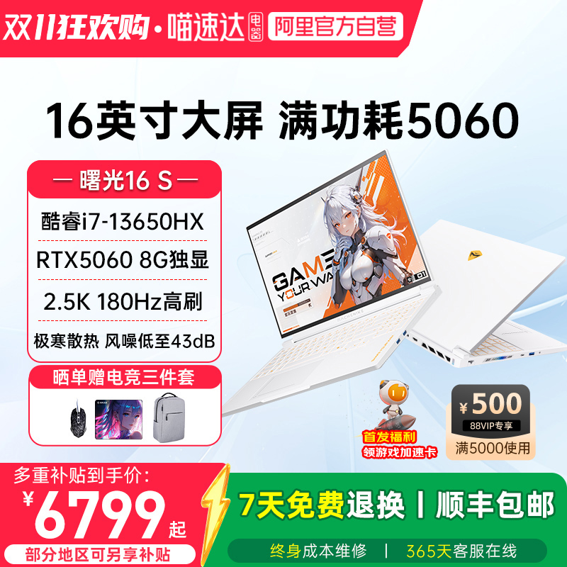机械师曙光16S 英特尔酷睿i7-13650HX RTX5060 2.5K 180Hz高刷电竞游戏本大学生笔记本电脑家用电脑影视娱乐