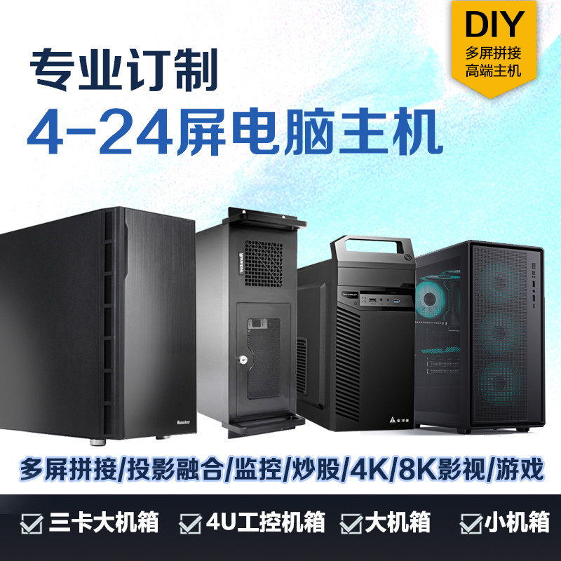定制组装8-24屏电脑高清直播办公投影融合拼接屏工程一机多屏主机
