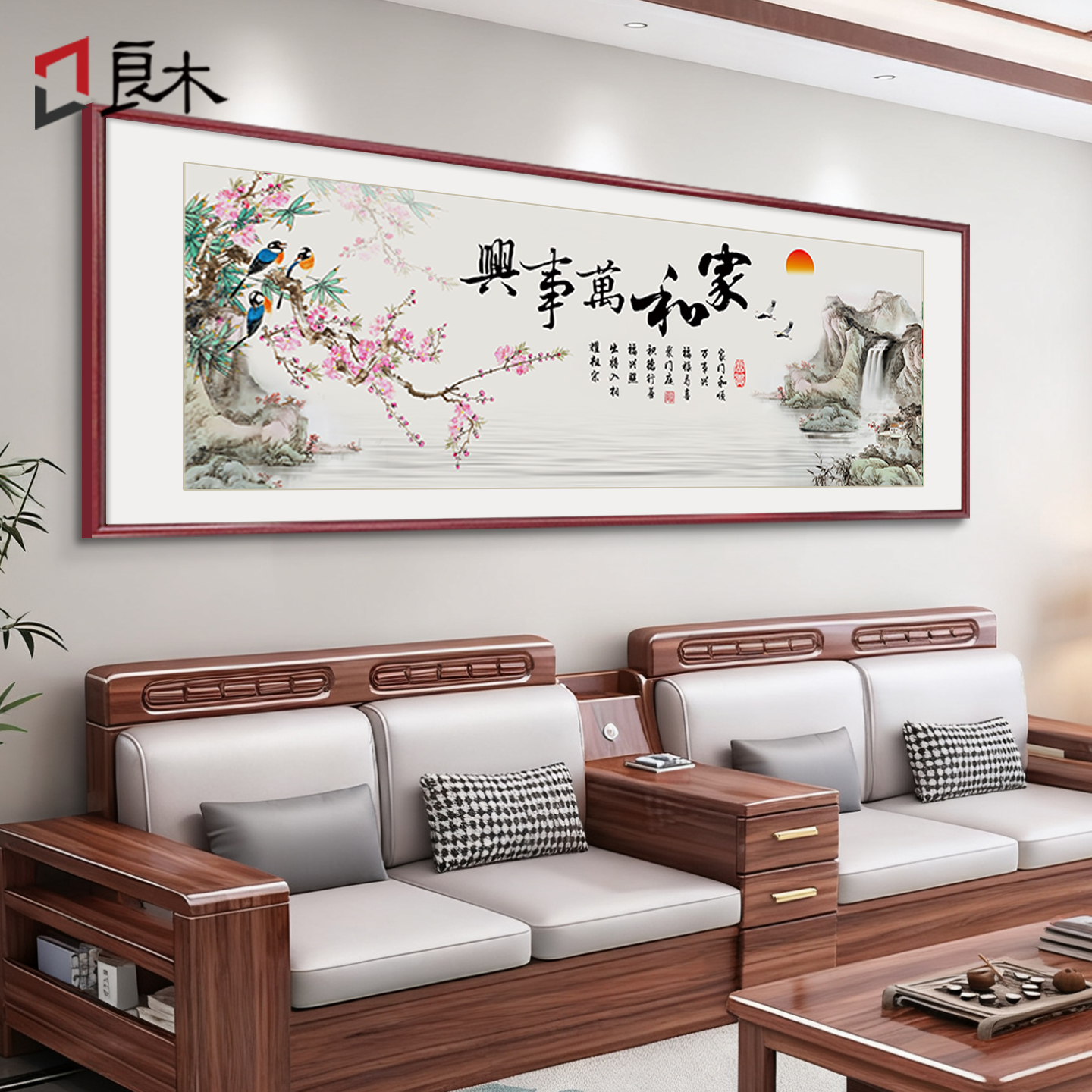 家和万事兴客厅挂画新中式沙发背景墙装饰画山水字画花鸟风景壁画