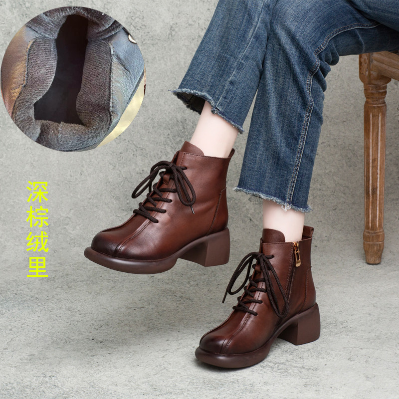 - 女短靴冬加绒 粗跟