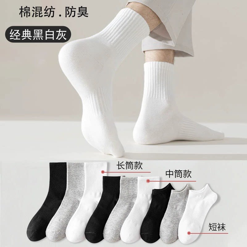 诸暨运动防臭袜子男春秋季吸汗短袜秋冬款白色青少年袜男士中筒袜