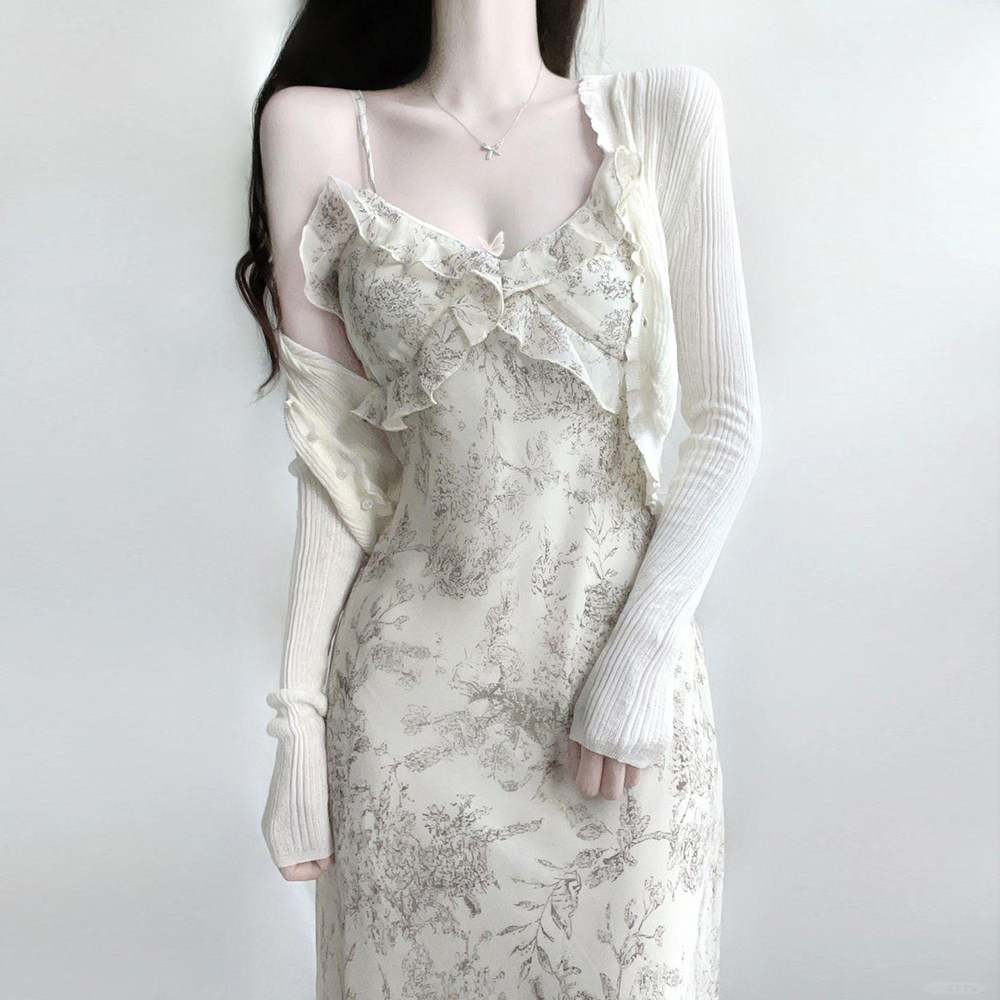 - 针织长裙吊带连衣裙