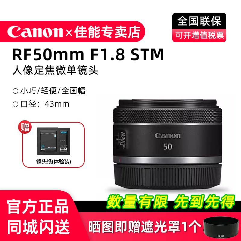 【自营】佳能RF50mm F1.8 STM 小痰盂微单镜头适用R50/62/7/8相机