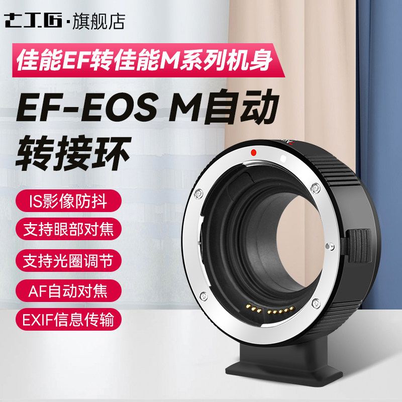 七工匠EF-EOS M自动转接环佳能EF/EF-S镜头转M6机身 自动对焦EF转EFM 防抖适用于M6 M200 M50 M100佳能小痰盂
