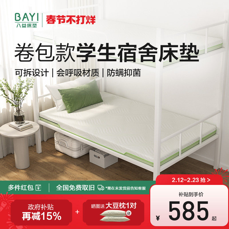 八益儿童床垫宿舍学生单人卷包大豆蛋白纤维1.2m防螨防霉政府补贴