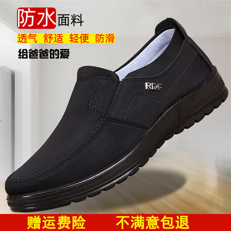 防水布鞋男透气舒适一脚蹬休闲鞋防滑轻便老北京布鞋中老年爸爸鞋