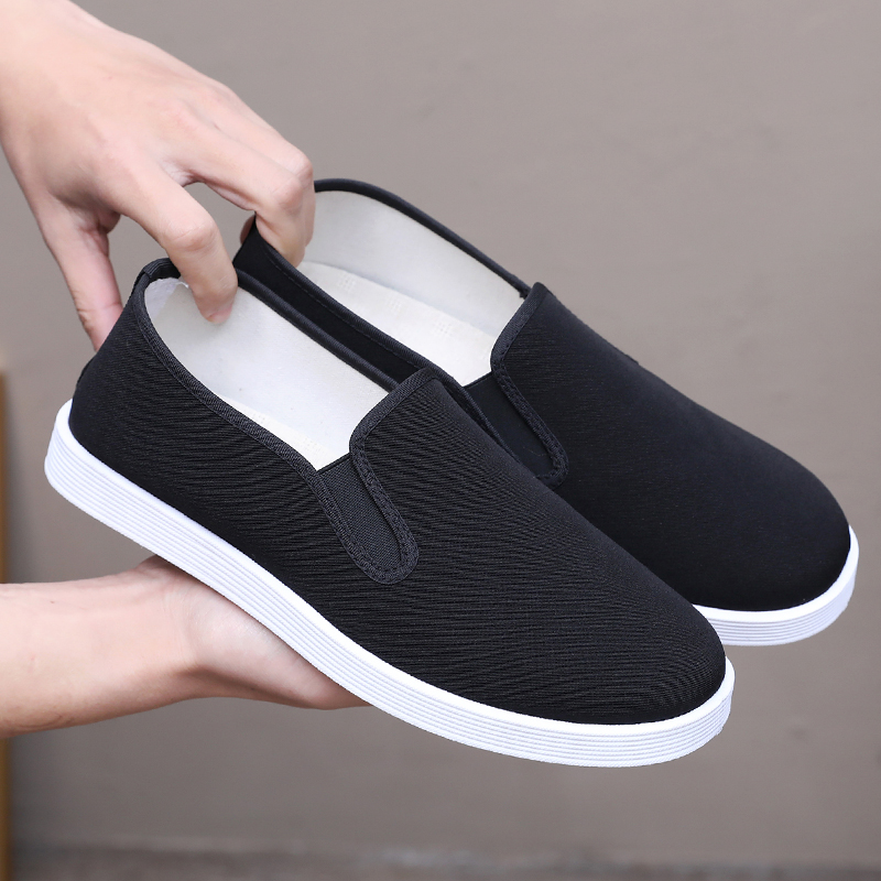 升级牛筋耐磨老北京黑布鞋夏季男鞋加厚纯棉吸汗透气单鞋男一脚蹬