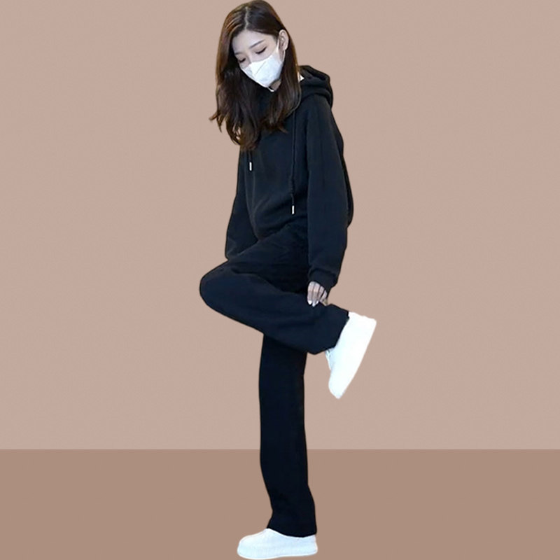 休闲运动服套装女2026春季新款宽松显瘦连帽卫衣直筒裤显瘦两件套