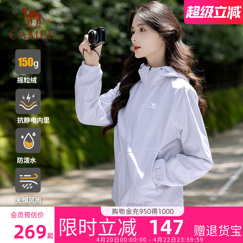 骆驼运动外套女加绒上衣2026年款冬运动防风夹克登山服女开衫卫衣