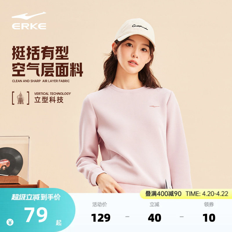 鸿星尔克卫衣女春季新款女士运动服圆领长袖套头上衣休闲女装衣服