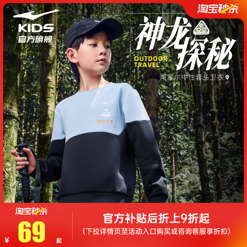 鸿星尔克童装男童大童卫衣春秋季青少年长袖圆领运动上衣女童衣服