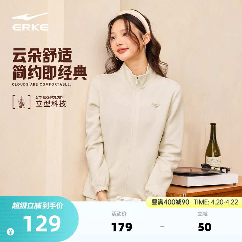 鸿星尔克外套女春季女士修身立领针织夹克运动服开衫卫衣女装上衣