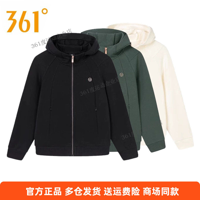 361度女装运动服连帽开襟卫衣2025春季新款宽松综训上衣休闲外套