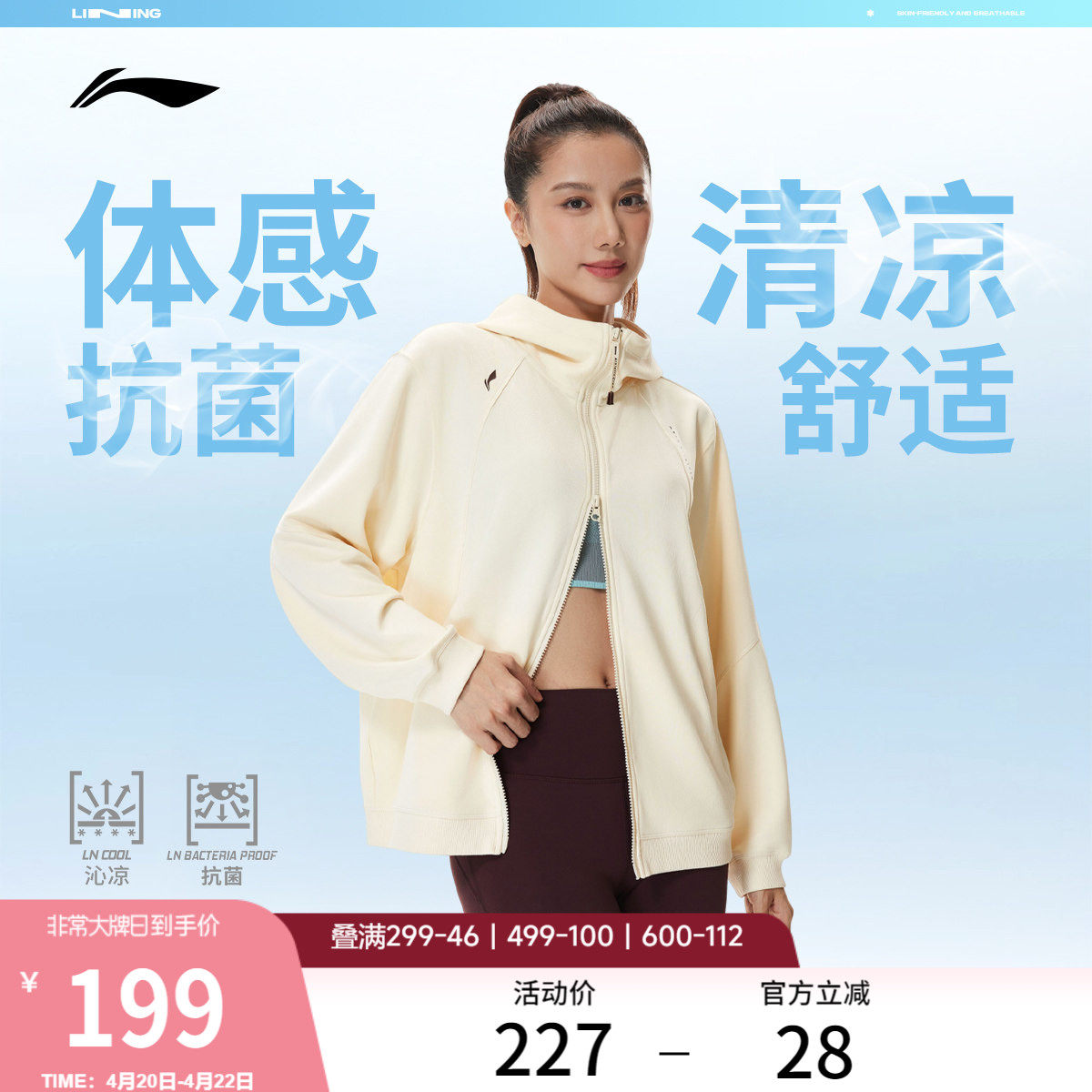 李宁遛弯外套女春季2026新款健身长袖冰感上衣女装拉链卫衣运动服