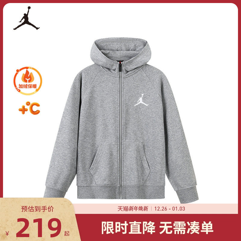 Jordan儿童装男童卫衣开衫2025秋冬新款中大童上衣运动外套女童潮