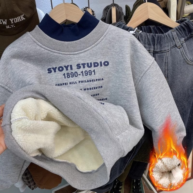 MQD童装男童加绒卫衣秋冬款宝宝儿童保暖上衣外套半高领打底衫
