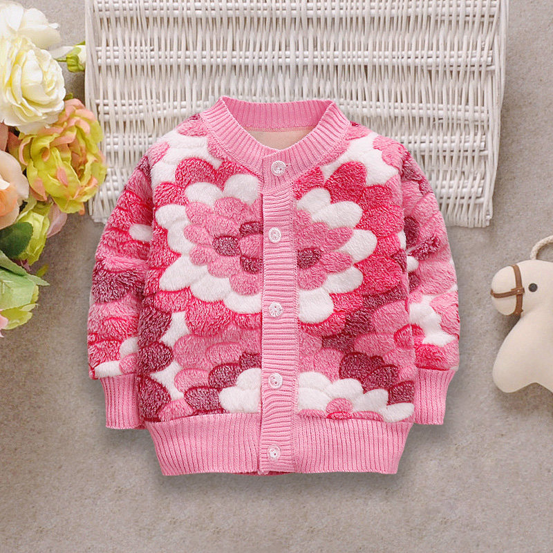 儿童加绒打底衫1-3岁宝宝上衣外套秋冬男童卫衣女童毛衣针织开衫