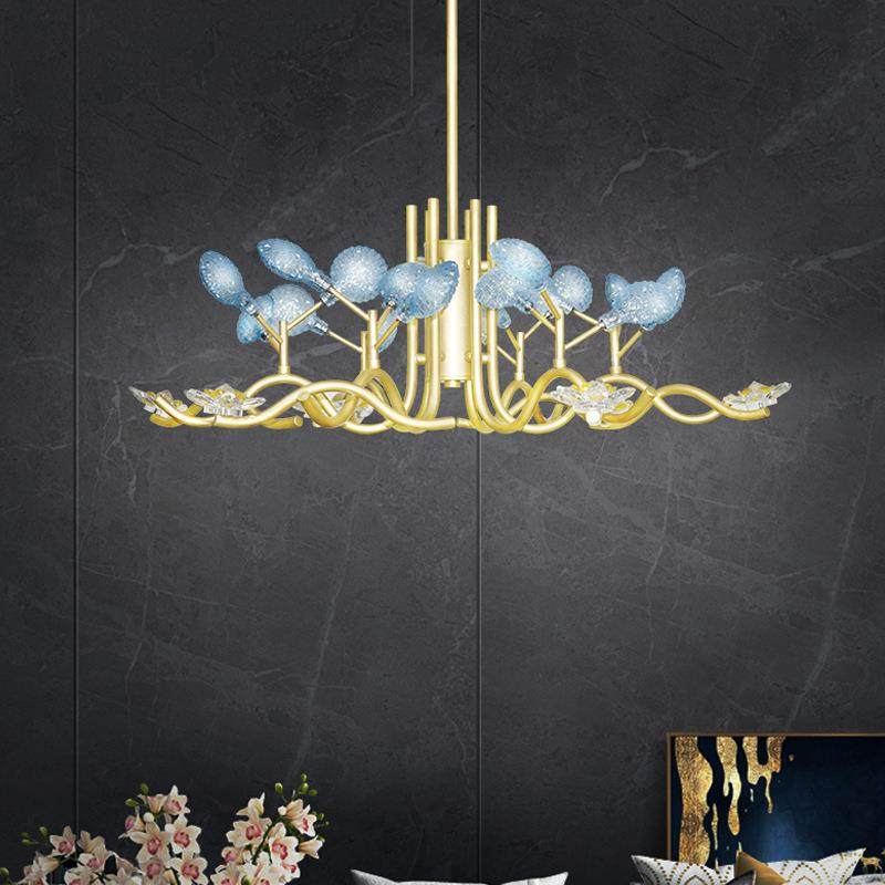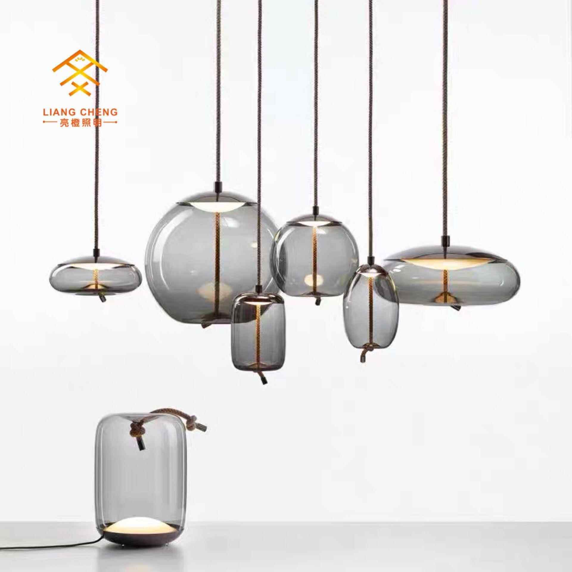 现代简约新款轻奢蓝色吊灯新款餐厅灯网红客厅灯创意卧室玻璃吊灯