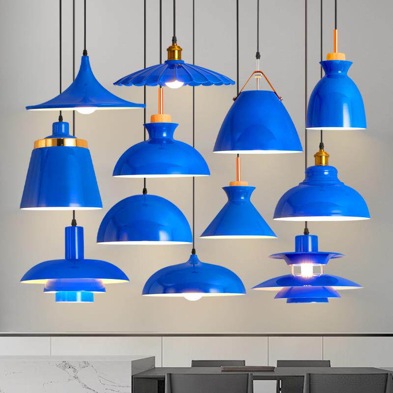 北欧长条餐厅客厅后现代简约吧台商业设计师展厅个性装饰蓝色吊灯
