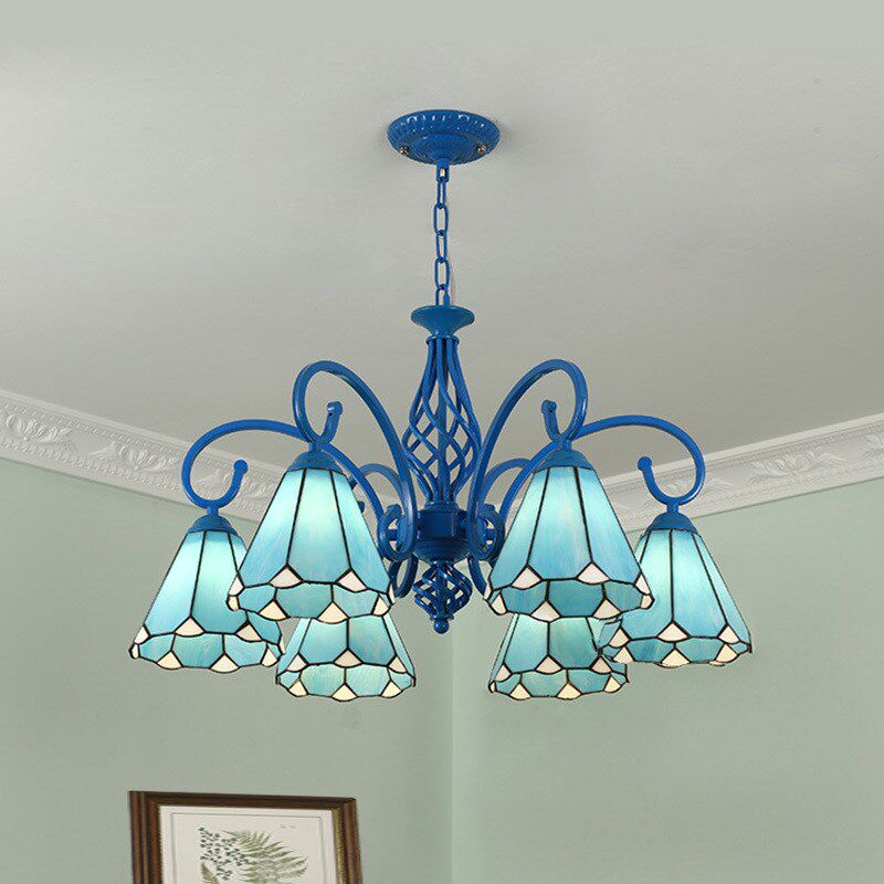 地中海风格蓝色吊灯 大气创意田园客厅餐厅卧室灯蒂凡尼灯饰灯具