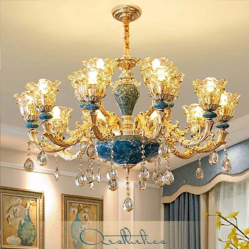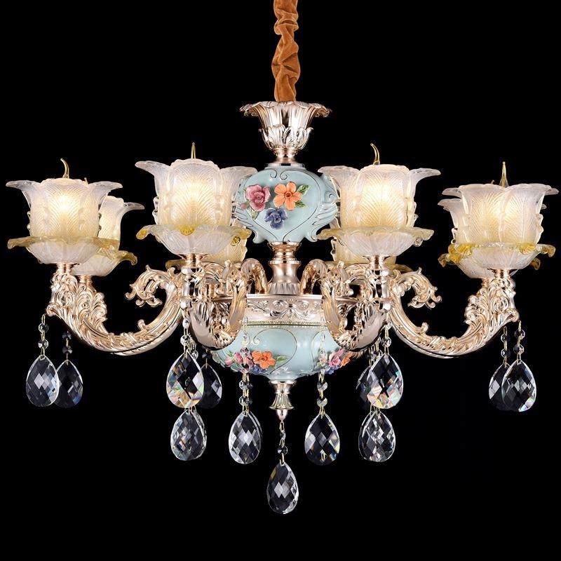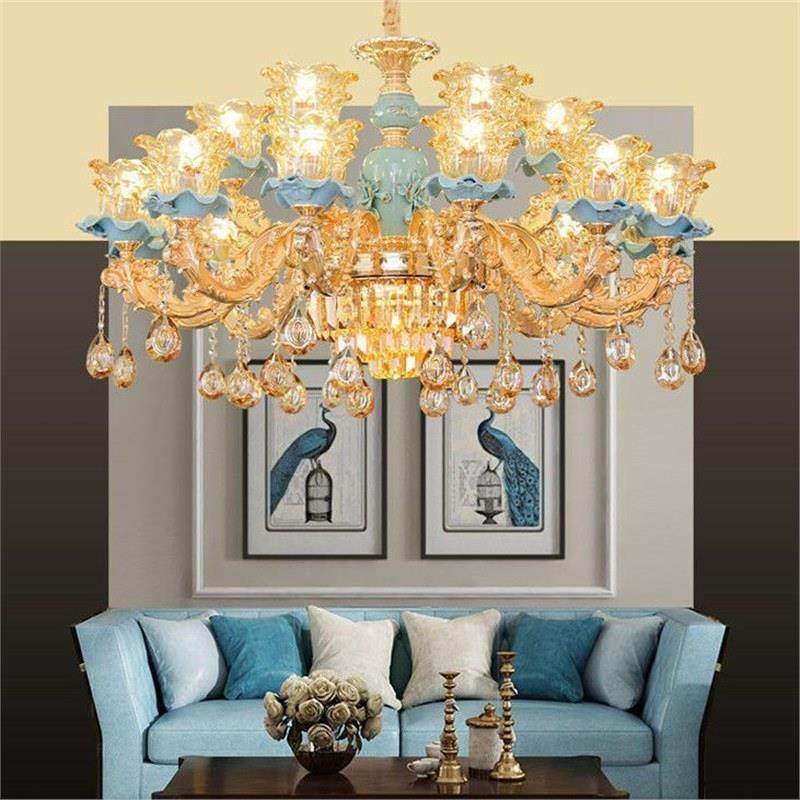 欧式吊灯轻奢水晶客厅灯现代简约餐厅卧室灯大气法式蓝色陶瓷吊灯