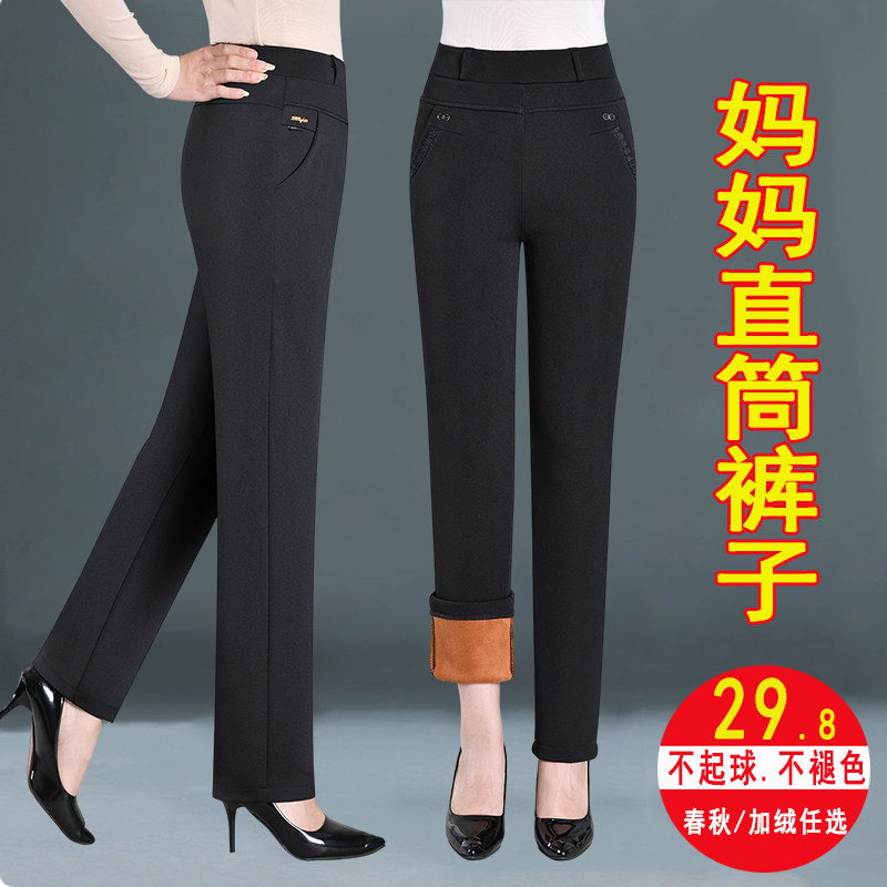 2025新款中年妈妈裤子春秋直筒高腰中老年女裤秋冬加绒弹力休闲裤