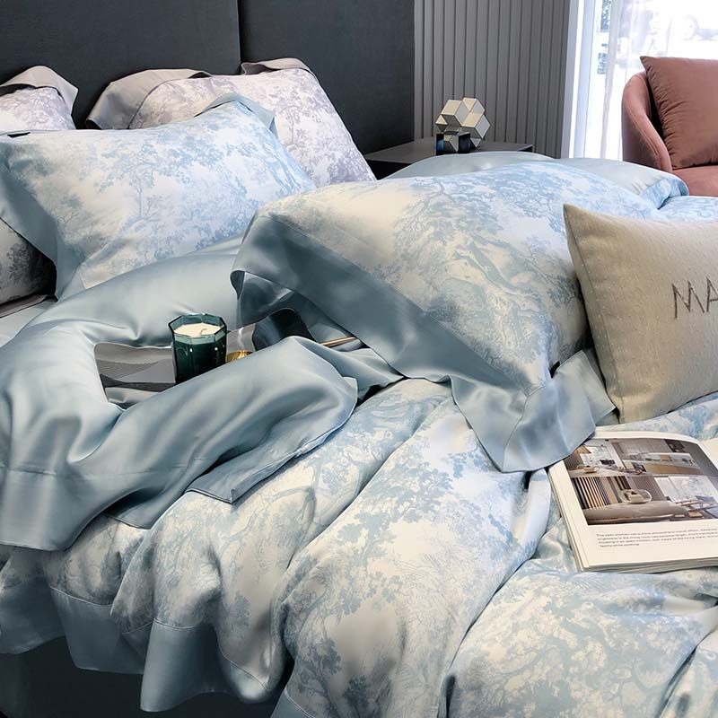 清悠居重磅25姆米真丝四件套100%桑蚕丝高端印花被套床单床品套件