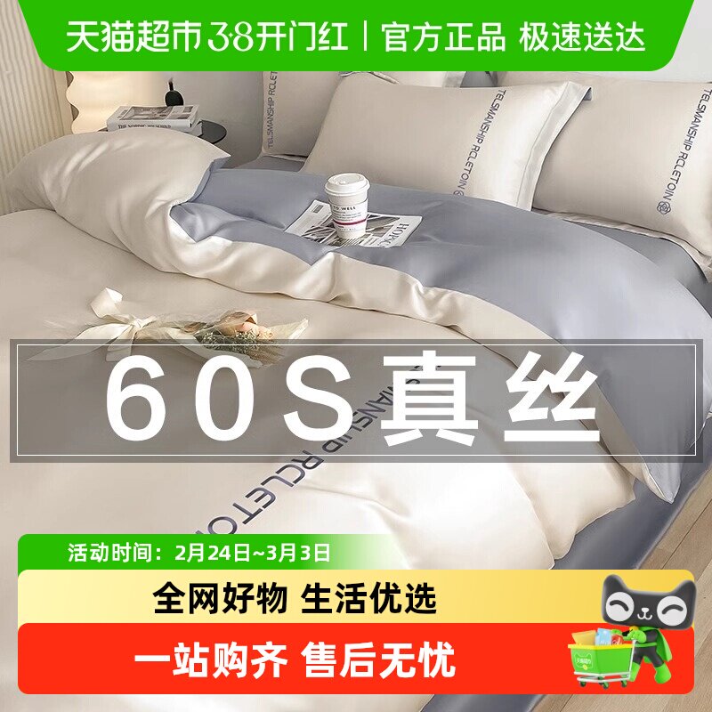 俞兆林60S真丝床上四件套冰丝被套夏裸睡床品宿舍床单床笠学生