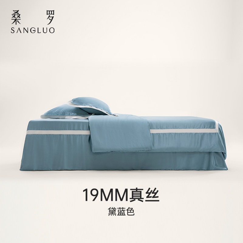 真丝四件套】桑罗100%桑蚕丝床品套件时髦撞色深睡助睡眠被单被套