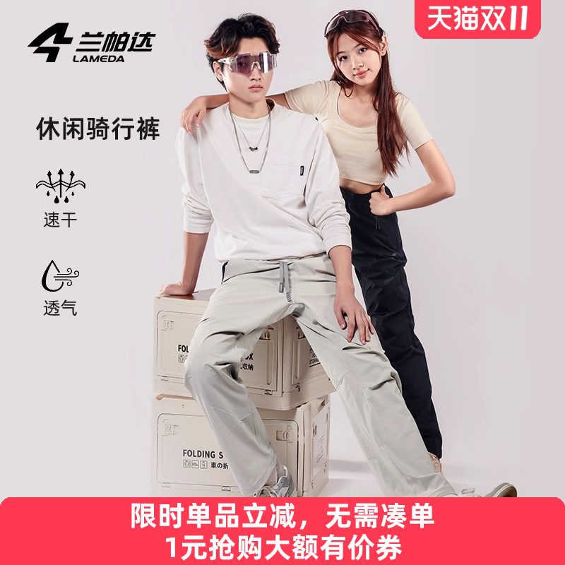 兰帕达新款休闲骑行裤通勤防风裤秋冬男女抓绒保暖自行车公路轻朗