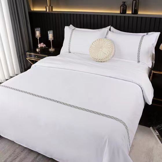 新款酒店布d草60支全棉贡缎被子宾馆床上用品四件套定制logo