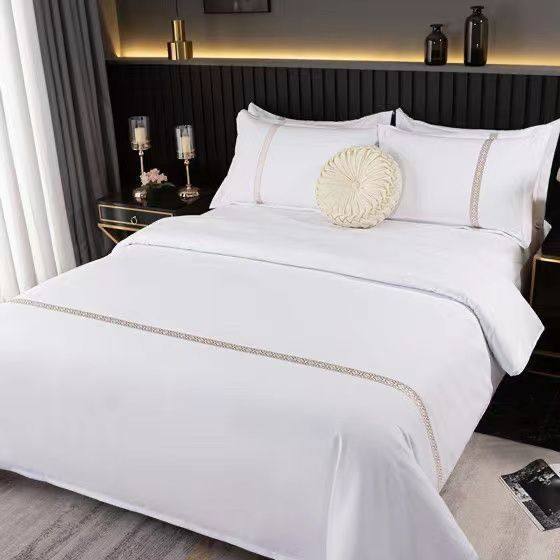 新款酒店布草60支全棉贡缎被子宾馆床上用品四件套定制logo