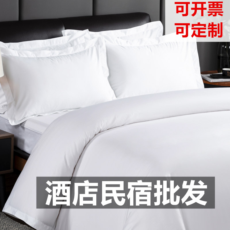酒店宾馆民宿四件套纯白色专用布草旅社床上用品被套旅馆批发定制