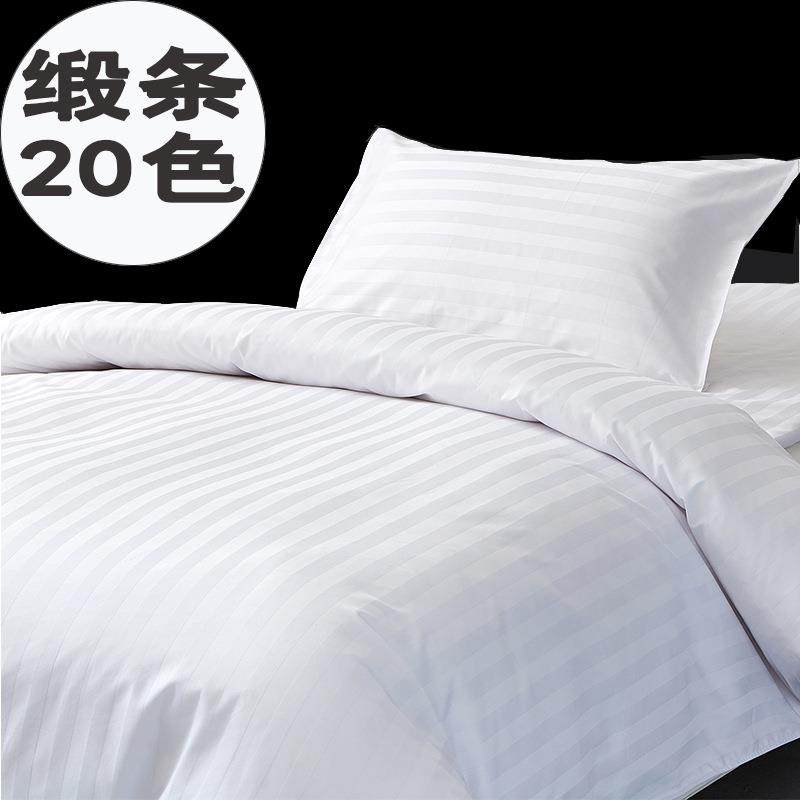 店宾馆床上用品四件套民白色床单被枕芯褥套子床酒宿笠酒店款88三