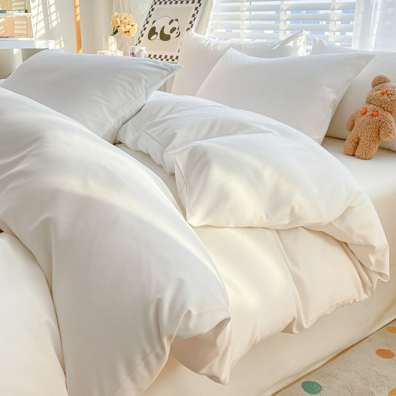民宿风酒店宾馆床上用品四件套纯白色被套床单三件套北欧ins床笠4