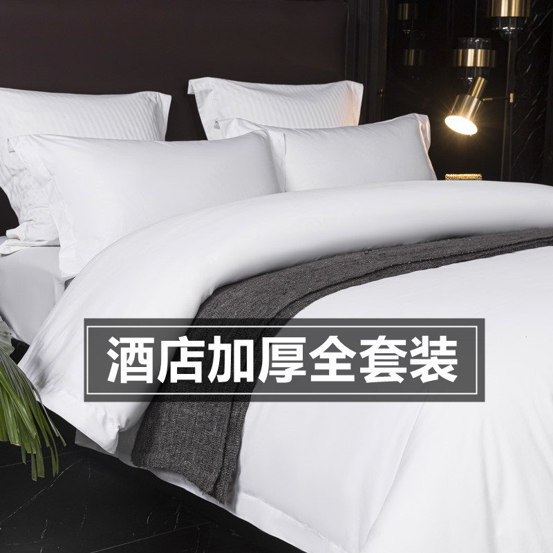 酒店宾馆床上用品四件套床单w床笠式三件套加厚加大民宿被子一整