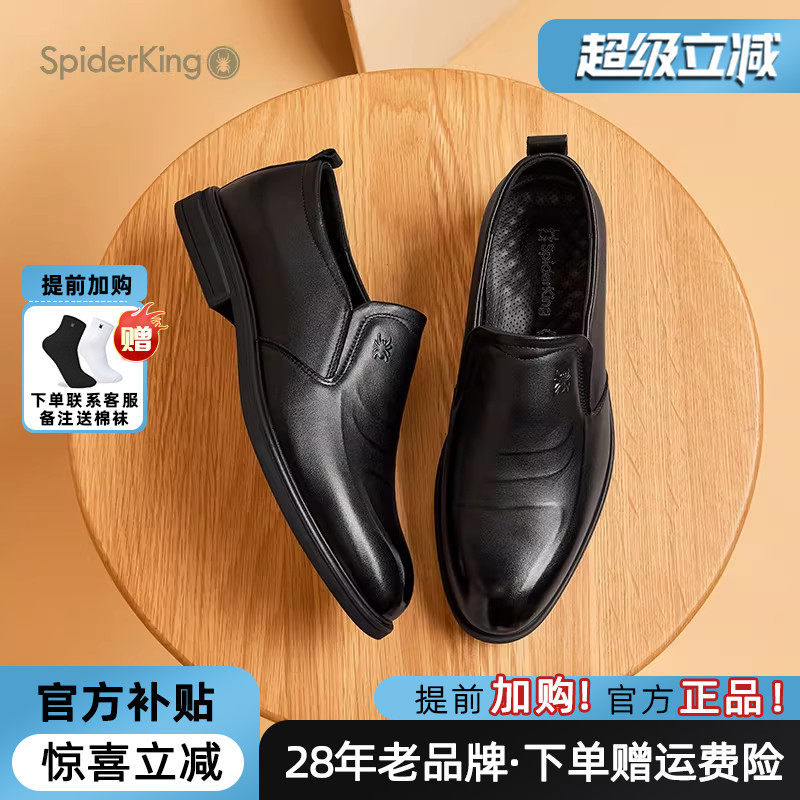 蜘蛛王男鞋2026春夏新款真皮商务正装软底舒适套脚皮鞋爸爸鞋父亲